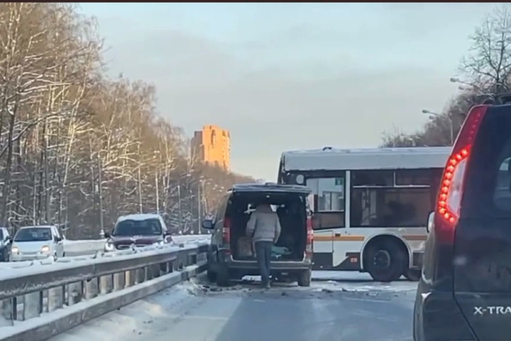 Судя по видео, пассажирский транспорт столкнулся с микроавтобусом. В результате аварии на автомагистрали быстро возник затор. На место ДТП выехали представители экстренных служб.