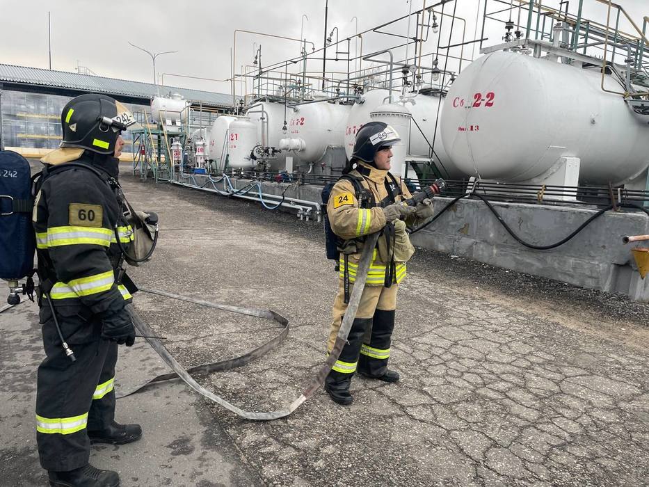 По сценарию резервуары были заполнены легковоспламеняющимся веществом. Один из баков взорвался и загорелся. Важно было не допустить возгорания соседних емкостей.