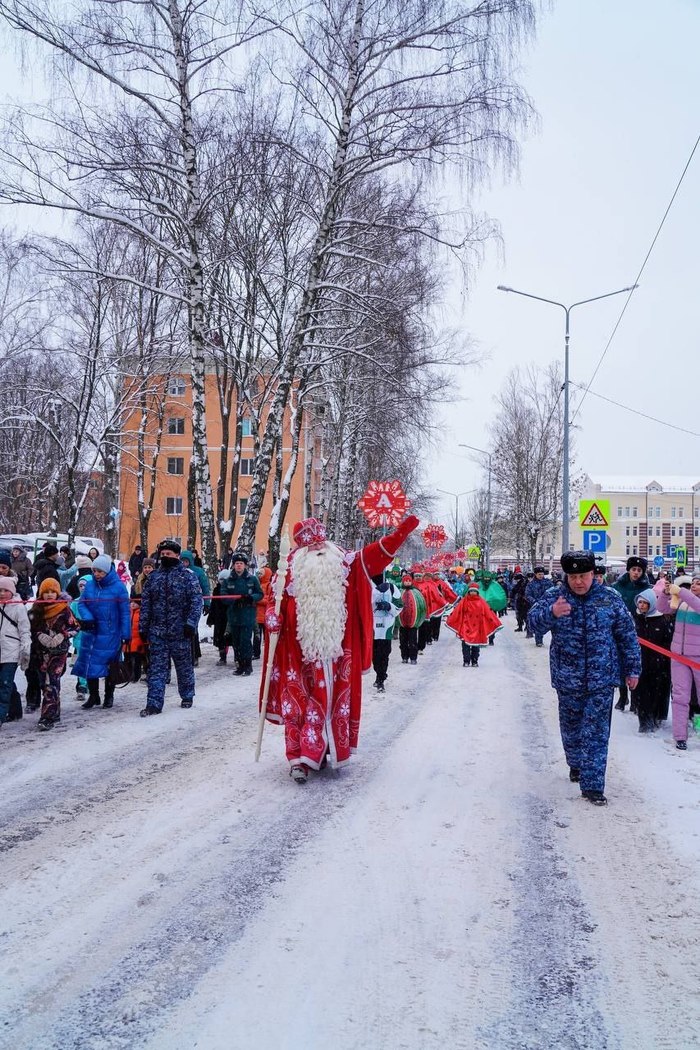 В Клину прошел традиционный новогодний парад с Дедом Морозом. В этом году он назывался "Во славу русского языка!". Вместе с новогодним волшебником карнавальные команды шли по всему городу.