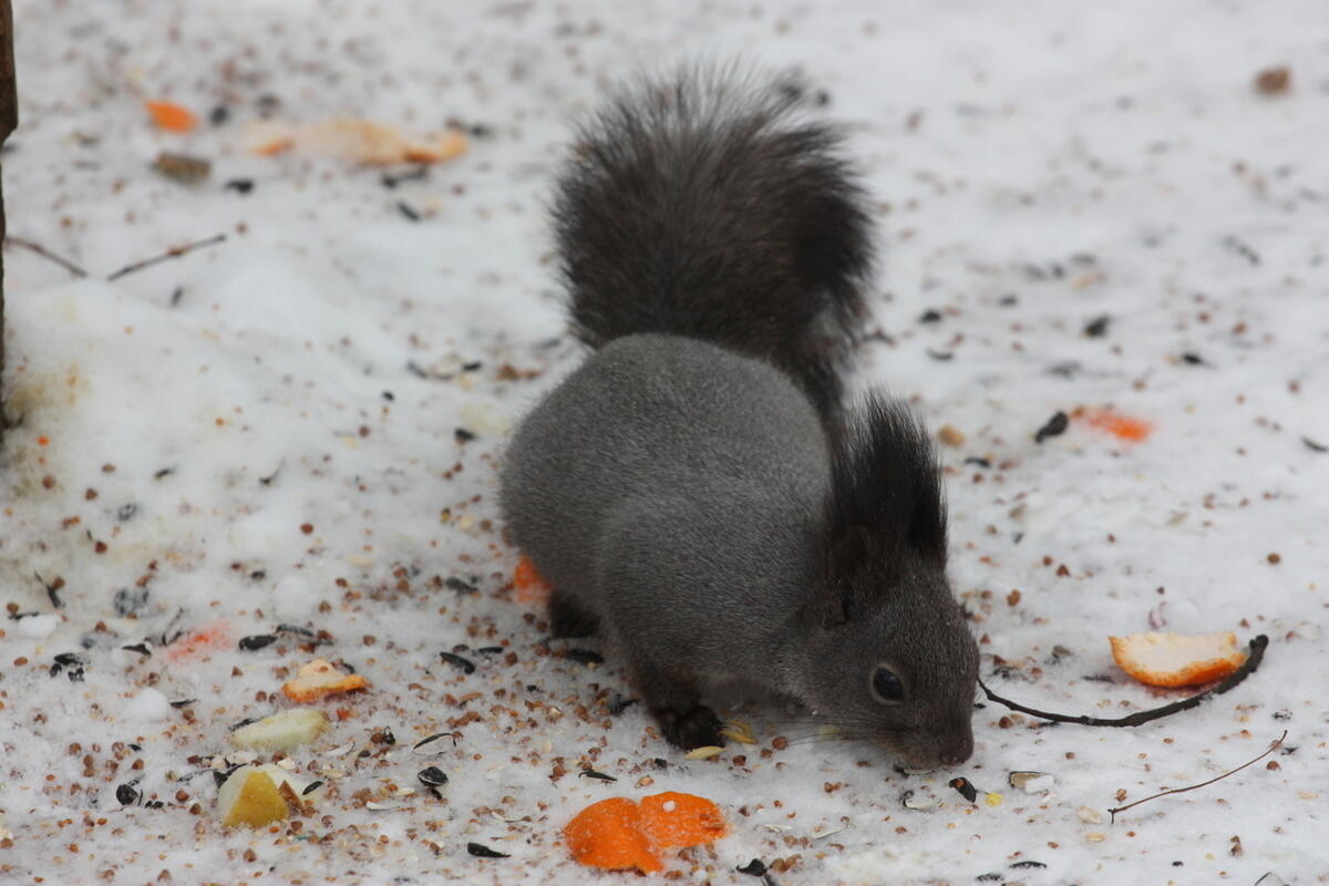 Зимой животным сложнее искать пищу и белок можно подкормить орехами, семечками и сухофруктами. Важно, чтобы угощение было не жареным и без косточек. Также для них опасно есть миндаль, фисташки и арахис. Кроме этого, необходимо соблюдать осторожность при кормлении. Белки всеядны и могут укусить человека за палец.