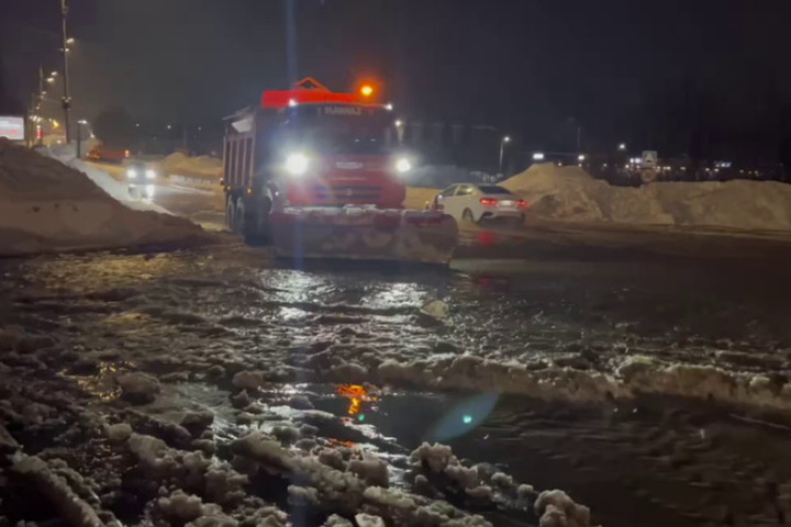 Коммунальщики сушат Московское шоссе после аварии в Сергиевом Посаде