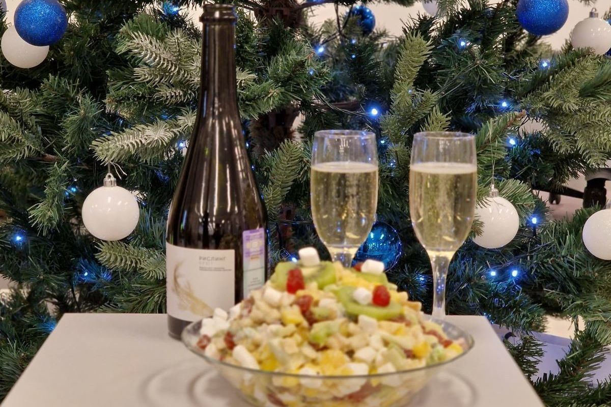 В своих подсчетах эксперты учитывали продукты для горячего ( 2 кг курицы, 0,5 картофеля и чеснок), холодных закусок (800 г солений, 400 г сыра, по 300 г колбасы вареной и сырокопченой), овощных салатов, бутербродов с красной икрой и шпротами, салатов «Оливье» и «Селедка под шубой» из расчета на четверых. Сюда вошли спиртные напитки в составе: игристое и столовое вино, коньяк, минеральная вода, сок и чай. Также специалисты учли десерт: торт и фрукты.